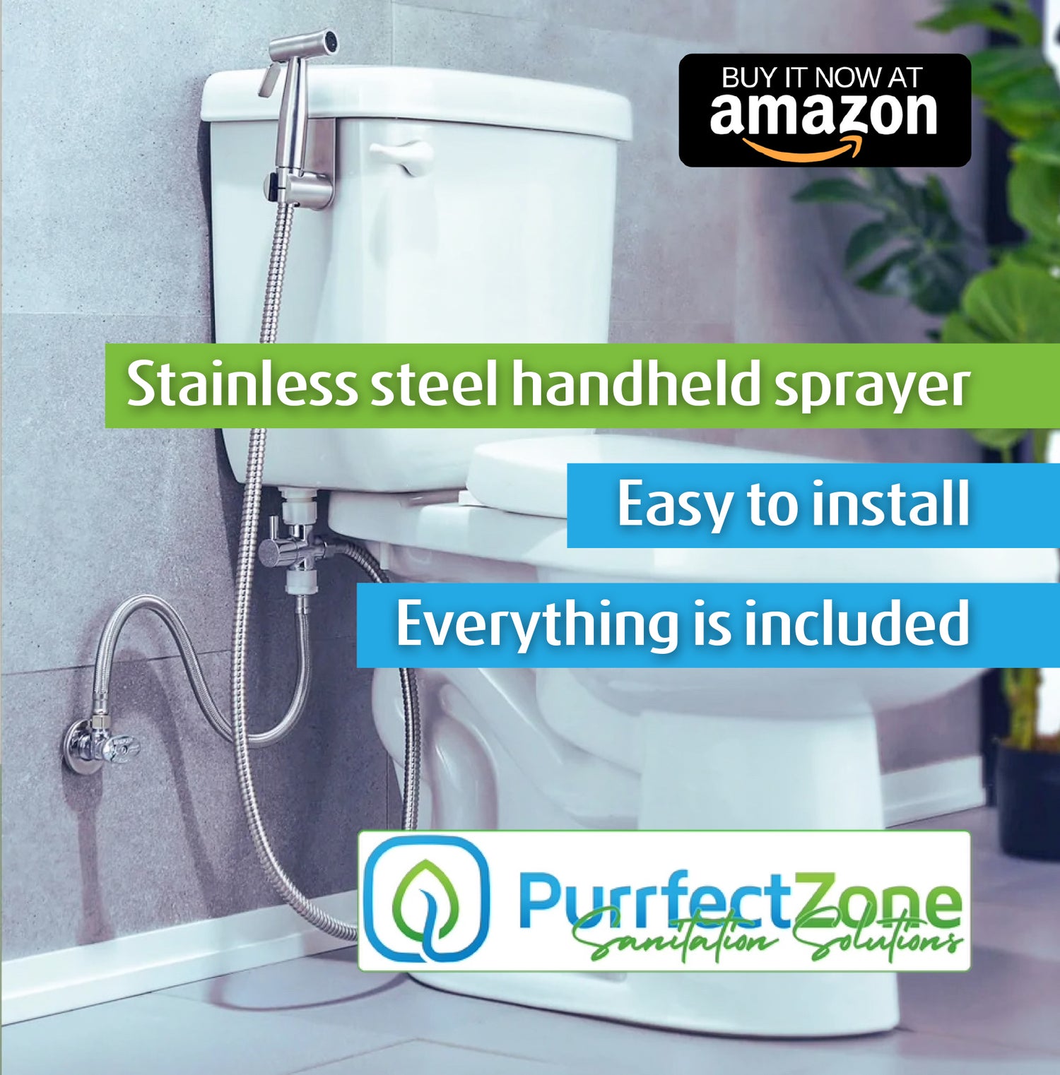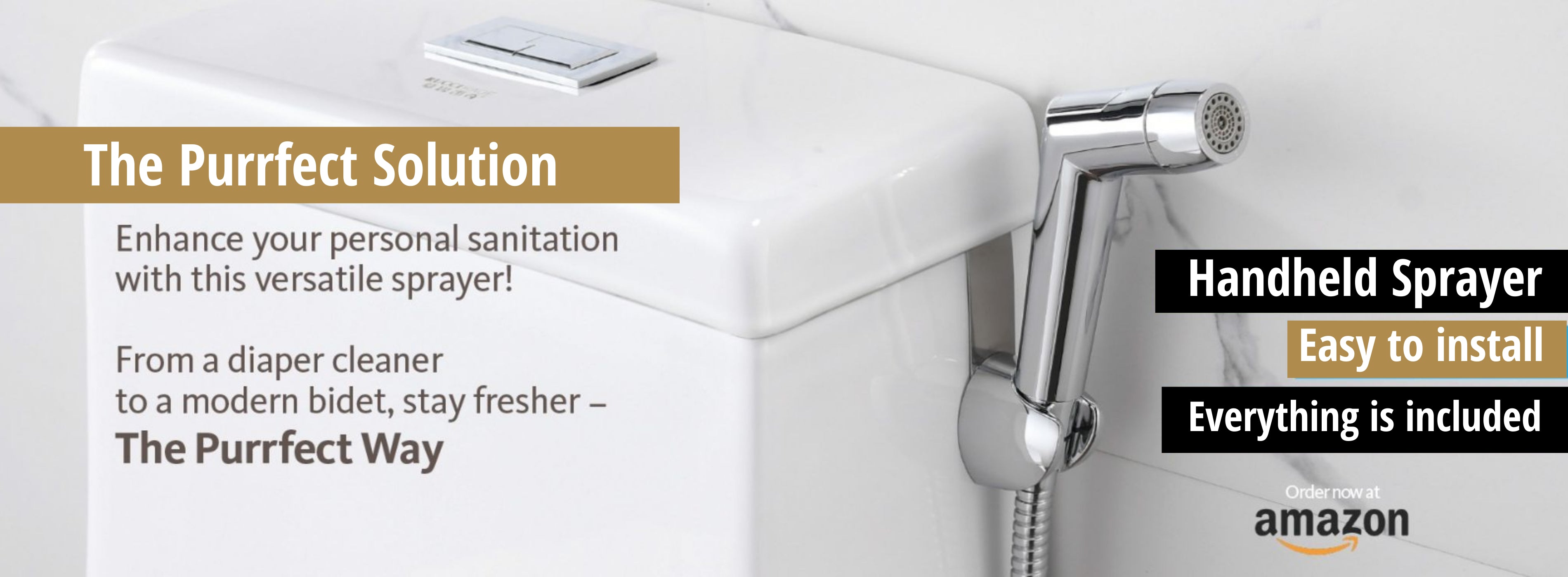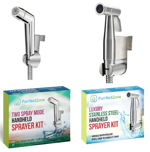 Easy-to-install, the PurrfectZone bidet sprayer serves as a handheld bidet and/or diaper sprayer, right in your own bathroom!