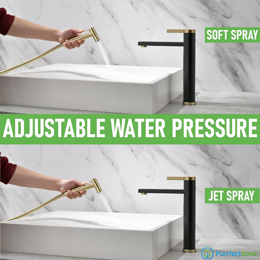 Purrfectzone Bidet Sprayer for Toilet, Handheld Sprayer Kit, Hand Held Bidet, Cloth Diaper Sprayer Set - Easy to Install - Brushed Gold