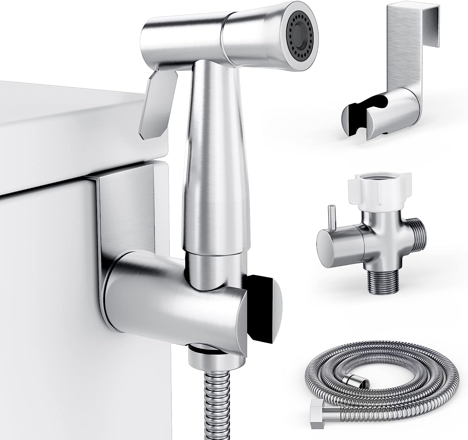 Includes T-Valve, Stainless Steel Sprayer Head, Bidet Holder, Stainless Steel Hose, Plumbers Tape